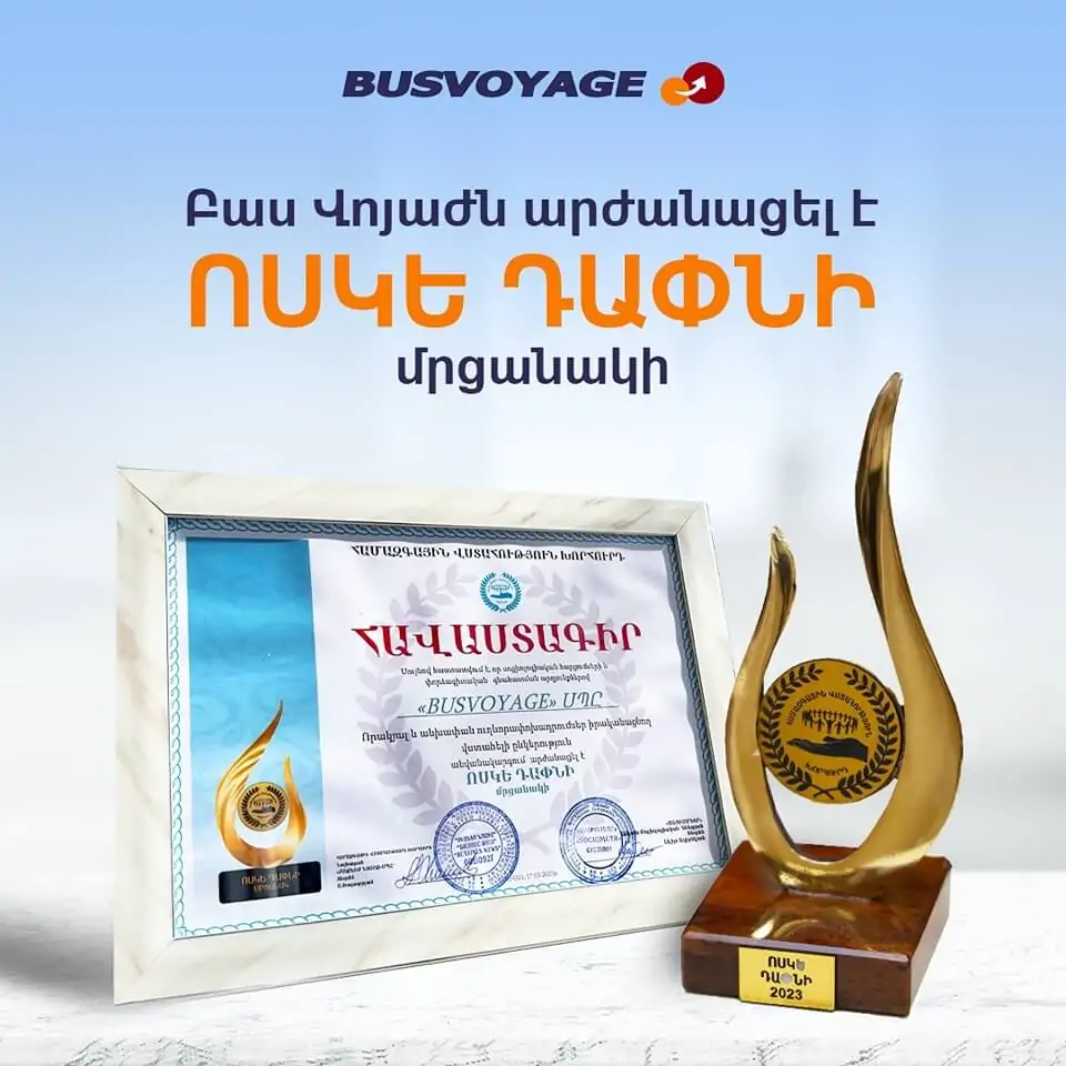 Բաս Վոյաժ ընկերությունն արժանացել է «Ոսկե Դափնի» մրցանակի` «Որակյալ և անխափան ուղևորափոխադրումներ իրականացնող վստահելի ընկերություն» անվանակարգում։